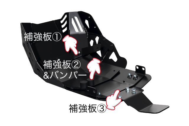 スキッドプレート(アンダーガード)| ヤマハ テネレ700 2021- オフロードを元気に走るための 頑丈なスキッドプレート オフロードの障害物、岩、切り株などとの衝突からオイルパン、エキゾーストパイプ、リアサスペンションのリンク部分を守ってくれる競技での使用を意識した頑丈なスキッドプレートです。 裏側の様子1 裏側の様子2 本製品は補強板と一緒に車輌のフレームに固定するので、衝突の打撃からエキゾーストパイプやオイルパン破損のリスクを軽減します。ヤマハ純正のエキゾーストマフラープロテクターは外してご利用ください。オフロード走行でスキッドプレートが凹んだり傷がつくのは当然という方にお勧めします。 裏側の様子2 適合 ヤマハ テネレ700 2021-※2025以降に取り付け可 仕様 素材:強化アルミニウム厚み:4mm塗装:パウダーコート(黒色)重量:4.2Kg製造国:ポーランドサポートフレームと一緒に車輌のフレームに取り付け、転倒や衝突からオイルパンやエキゾーストパイプの致命的な破損を最小限にすることが目的です。取り付けに必要な部品が付属しているので、取り付け用の穴あけ加工は不要です。 DIYの注意事項 ※当サイトで掲載している写真は、全て商品のイメージです。実際の商品と細部が異なる場合があります。 ヤマハ テネレ700 2021- | スキッドプレート(アンダーガード) 在庫状態 : 注文可 販売価格 ¥60,500(税込) お得な割引き 申し込みません 代金は銀行振り込みします(550円引き) 適合 選択してください 車種・年式の確認をしました 製造年式(西暦) DIYの注意事項 選択してください DIYに関する注意事項を了承しました 数量